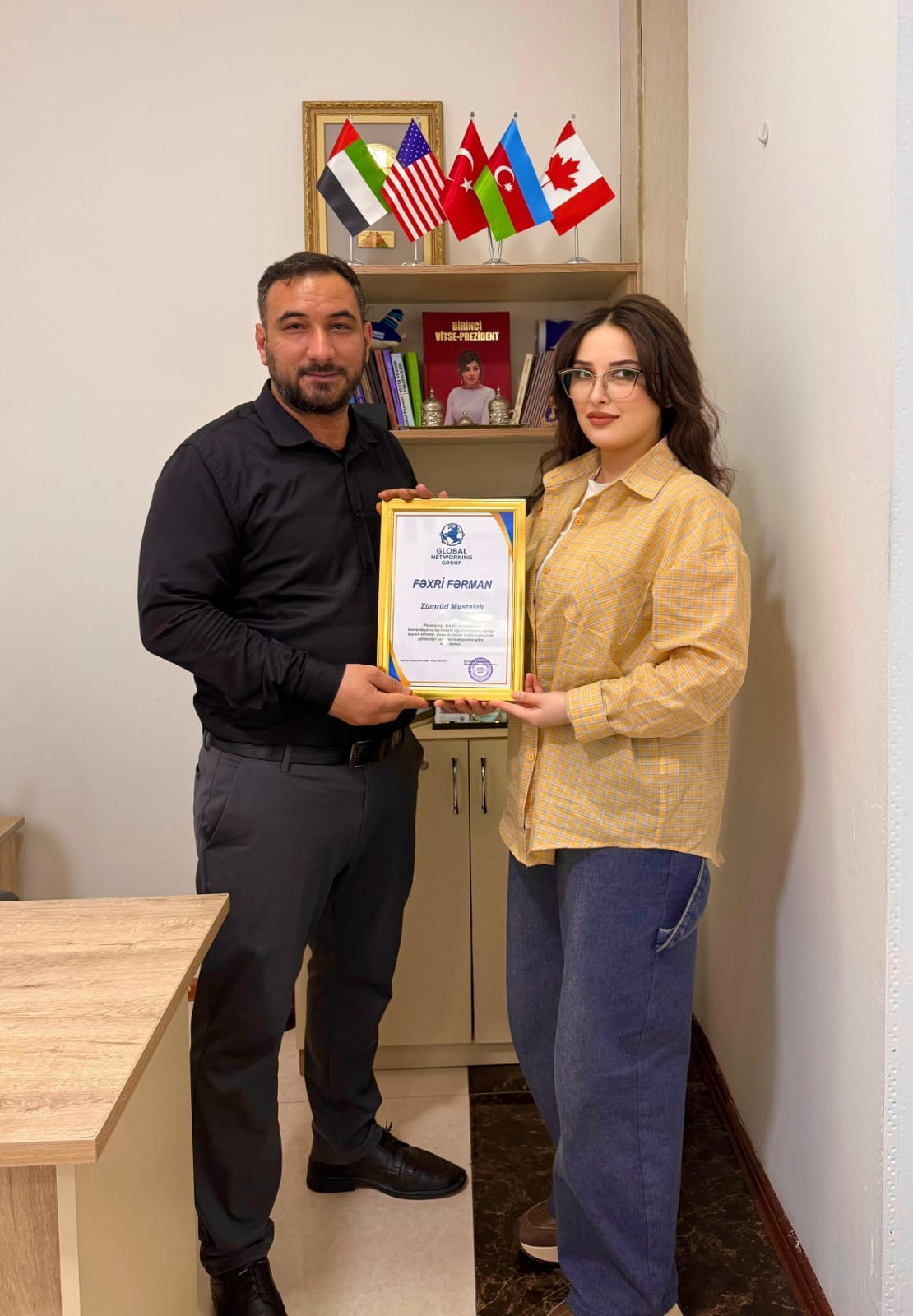 Global Networking Groupun imzası altında, Şamxal Həsənov tərəfindən Zümrüd Mustafalıya SMM (sosial media marketinqi) sahəsində göstərdiyi peşəkarlıq və uğurlu layihələrinə görə Fəxri Fərman təqdim edildi.