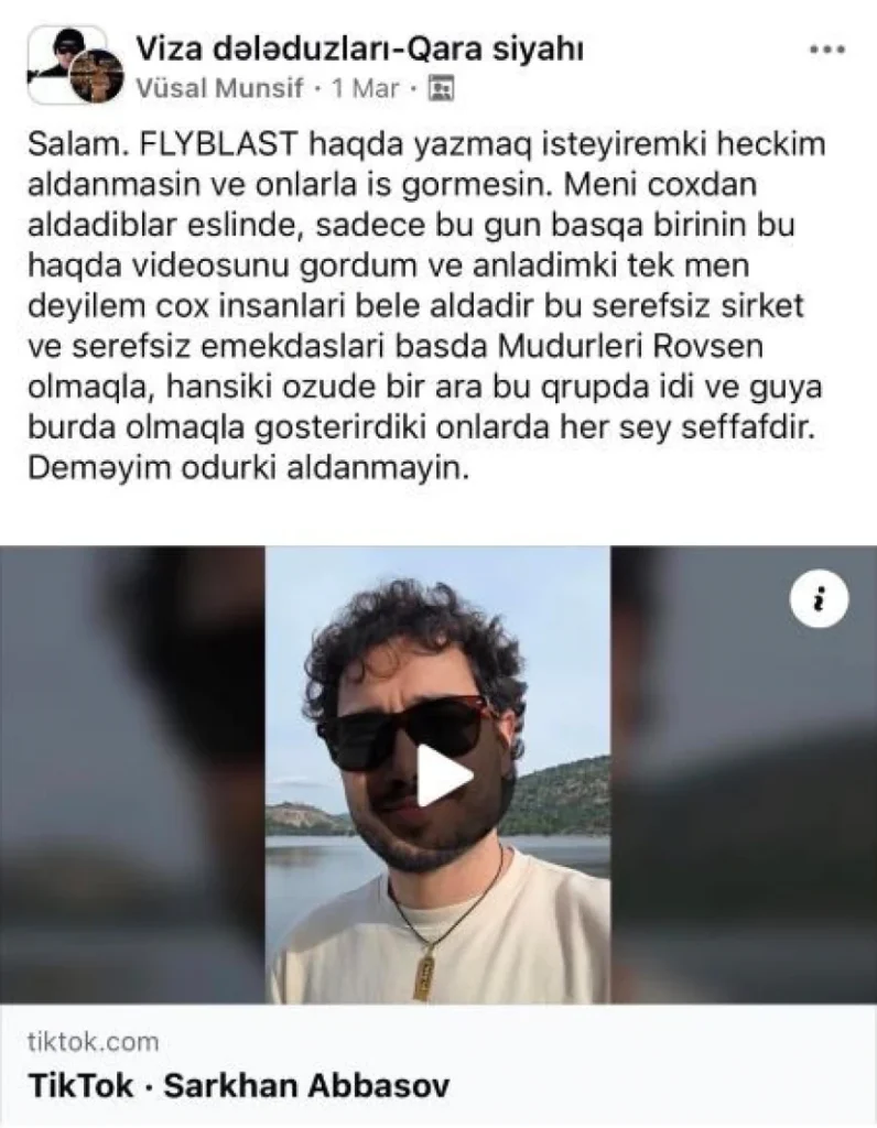 Bakıda fəaliyyət göstərən Flyblast Travel Agency ilə bağlı ortaya çıxan məlumatlar ciddi qalmaqala səbəb olub. İddialara görə, şirkətin rəhbəri kimi təqdim olunan Rövşən Abdullayevin adı bir sıra ağır qanun pozuntularında hallanır.
